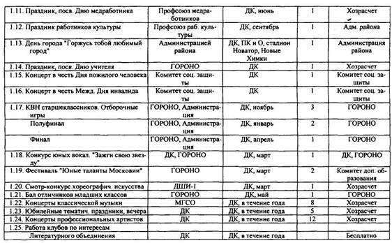 Сюда же относятся и ситуационные планы, в которых определяется порядок действия сотрудников учреждения в случаях снижения интереса населения к деятельности социокультурного учреждения, уменьшения финансирования, увольнения ведущих творческих специалистов и других.