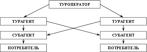 Это пример так называемой классической агентской сети, когда между производителем тура и его потребителем существует только один уровень посредников-агентов.