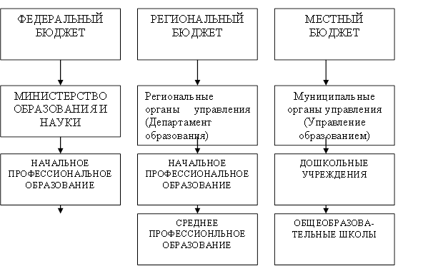 Из схемы 1 видно, что финансовые ресурсы, направляемые органам и учреждениям образования, представляют собой часть доходов государственного бюджета трех уровней, которые формируются главным образом путем сбора прямых и косвенных налогов.