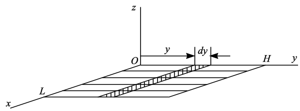 Для вычисления  разобьем пластину на элементарные полосы шириной dy и массой  и проинтегрируем по у от 0 до H: