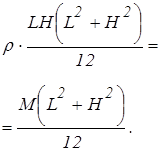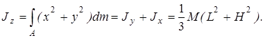 Тонкая прямоугольная пластина имеет размеры L и H и массу М. Оси Ох и Оу расположены в плоскости пластины (рис. 2.8), тогда для всех точек . Формулы для вычисления  и (2.10)  принимают вид