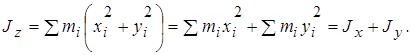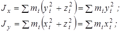 Для этого нужно просуммировать все массы, умноженные на квадраты расстояния x до оси Cz. Тогда, согласно(2.7),  имеем