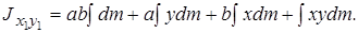 Первый интеграл равен массе тела М, второй и третий равны нулю (они соответственно определяют положение центров тяжести ), а последний равен  по определению. Таким образом, имеем (две другие формулы получены аналогично)