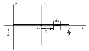 Момент инерции стержня относительно оси , проходящей перпендикулярно стержню через его конец, параллельно zС, определяется по теореме Гюйгенса-Штейнера: