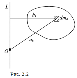 Поскольку расстояние k-й частицы до центра О определяется известным выражением , момент инерции относительно этого центра