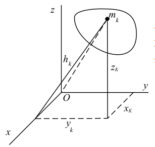 Выразим моменты инерции системы материальных точек относительно оси  (2.6) для декартовых осей координат. Расстояние k-й частицы до оси х определяется из геометрии задачи (рис. 2.3).