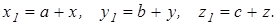 Установим формулы для центробежных моментов инерции, аналогичные (2.13). Рассмотрим две системы координат с взаимно параллельными осями  и Сxyz, где С-центр масс тела (рис. 2.6). Обозначим через a,b,c координаты точки С в системе Тогда формулы перехода от одной системы координат к другой будут иметь вид