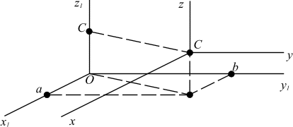 Возьмем начало координат в точке С, совместим ось z с осью , а ось у направим так, чтобы она пересекала оси  и  (рис. 2.5).