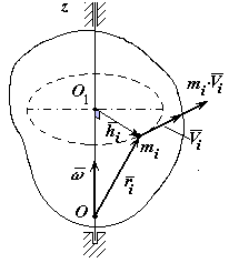 Вычислим момент количества движения твердого тела относительно оси вращения.