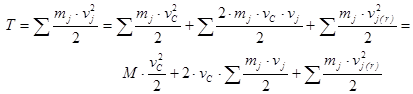 Теорема Кенига.  Кинетическая энергия системы в абсолютном движении складывается из кинетической энергии центра масс, если в нем сосредоточить всю массу системы, и кинетической энергии системы при ее движении относительно центра масс.