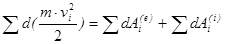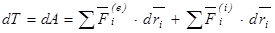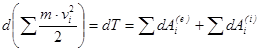 Теорема.  Дифференциал кинетической энергии системы равен сумме элементарных работ всех внешних и внутренних сил, действующих на систему.