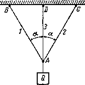 , то при дальнейшем возрастании груза они, а стало быть и усилие N3, останутся без увеличения. Наша статически неопределимая система превратится в статически определимую, состоящую из двух стержней АВ и АС и нагруженную в точке А силой Q, направленной вниз, и известным усилием