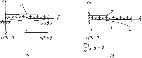Рис.3. Примеры граничных условий: а) двухопорная, б) консольная балки
