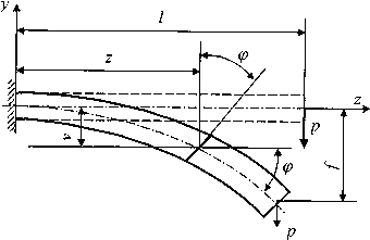 (рис. 2). Вследствие гипотезы плоских сечений угол поворота сечения (