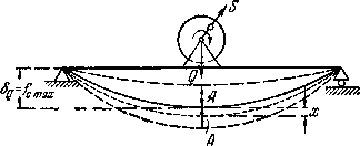 Сила инерции груза будет вызывать в балке напряжения и деформации, периодически меняющие свой знак. Балка будет совершать колебания с периодом, равным периоду вращения груза. Это будут так называемые вынужденные колебания. Если период вынужденных колебаний совпадет с периодом свободных колебаний стержня, то мы получим явление резонанса, при котором амплитуда (размах) колебаний будет резко расти с течением времени. Наличие сил трения, сопротивление воздуха и т. д. ограничивают на практике рост этой амплитуды; однако она может достичь очень большой величины, значительно превышающей те деформации, которые испытывала бы конструкция под действием ускорений той же величины, но не меняющих знака.