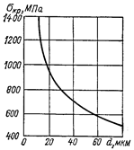 На рис. 17 показана зависимость прочности стеклянных нитей от их диаметра d. Зависимость получена опытным путем, но она согласуется с результатами, полученными по статистическим теориям.