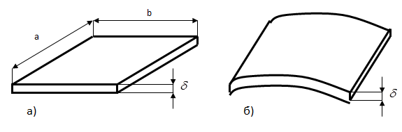 2. Пластина – элемент конструкции, у которого одно измерение (толщина) мало по сравнению с двумя другими. Пластина, криволинейная до нагружения, называется оболочкой.
