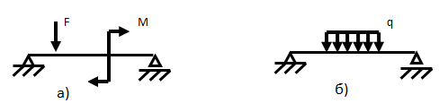 Рис. 4. Внешние силы: а – сосредоточенные силы; б – распределенная нагрузка