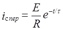 τ = RC – характеризует скорость протекания переходного процесса. Переходный процесс закончится примерно через (3÷5)τ. В отличие от напряжения, ток на конденсаторе изменится скачком