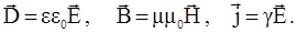 Если изучаемые среды несегнетоэлектрические, неферромагнитные и изотропные, между величинами индукции и напряженности магнитного и электрического полей, а также между плотностью тока и напряженностью электрического поля существуют линейные зависимости:
