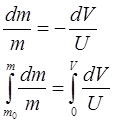 Разделим переменные и проинтегрируем его в пределах, соответствующих начальному моменту движения ракеты