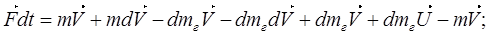 Уравнение (1) представляет собой основное уравнение динамики точки переменной массы и называется уравнением Мещерского. Оно позволяет определить ускорение, приобретенное ракетой под действием внешних сил и реактивной силы.
