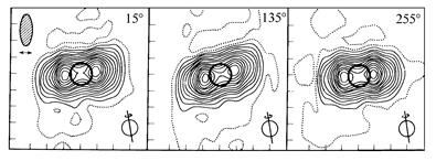 На миллиметровых и коротких сантиметровых волнах излучение Юпитера – чисто тепловое, хотя и с Tb несколько выше равновесной, что предполагает поток тепла из недр. Начиная с волн ~9 см яркостная температура возрастает – появляется нетепловая составляющая, связанная с синхротронным излучением релятивистских частиц со средней энергией ~30 МэВ в магнитном поле Юпитера. На волне 70 см Tb ~ 5×104 K. Источник излучения не связан с диском планеты, а имеет вид двух протяженных лопастей по обе стороны от планеты (рис. 4.3). Такой вид радиокарты – прямое указание на магнитосферное происхождение излучения.