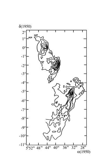 Рис. 5.15. Карта молекулярного облака Ori A в линии CO J=1–0 (l =2.6 мм).