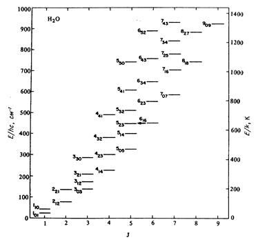 Рис. 5.18. Схема уровней молекулы H2O.