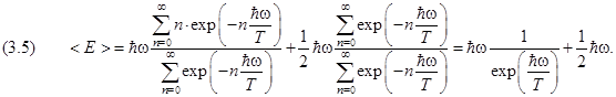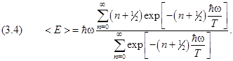 Первая сумма в правой части (3.5) уже была вычислена в разделе 2.2.4 второй главы, когда при расчёте средней энергии осциллятора из (2.4.4) мы получили (2.4.6). Вынесем за скобки множитель ћω и напишем окончательный результат: