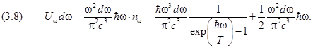 Подставляя среднюю энергию (3.6) и спектральную плотность числа осцилляторов (2.2.8) в (2.2.1), получим новое выражение для плотности энергии излучения чёрного тела с учётом нулевых колебаний: