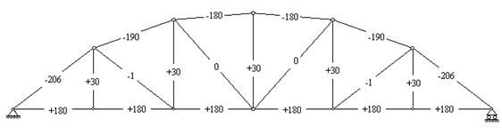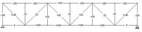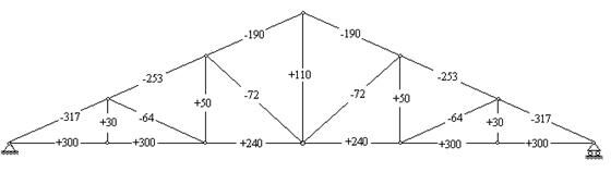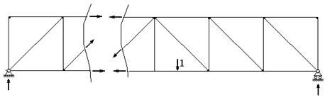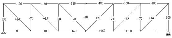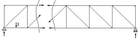 . Этот же ответ был получен нами ранее в разделе “Пример расчета фермы на неподвижную нагрузку” без использования линий влияния, что подтверждает правильность проделанных вычислений.