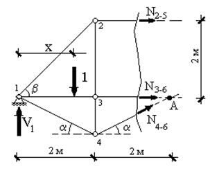 . Следовательно, при нахождении единичного груза слева от рассеченной панели (x<2м)