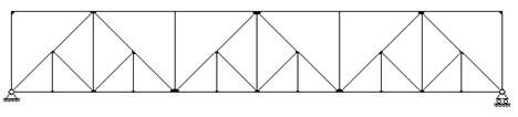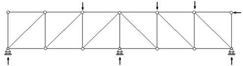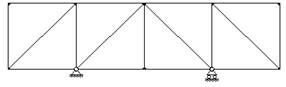Теперь выполним перестановку опорных связей. Отбросим на левой опоре одну связь, сделав неподвижную опору катковой, но добавим еще одну катковую опору в центре пролета фермы (рис.17).