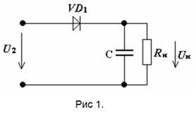 В однополупериодном выпрямителе с емкостным фильтром рис 1, рассчитать Uнср и Uобрмакс, если Сф = ∞, U2 = 150 В, частота напряжения сети 50 Гц, Rн = 2 кОм, построить временную диаграмму выпрямителя.