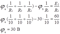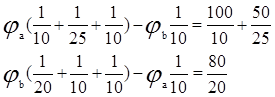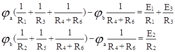 Решая систему уравнений, определяем потенциалы узлов φa и φb