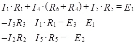 | Определяем количество узлов, ветвей и независимых контуров: q = 3, p = 5, контуров 3. Составляем уравнения по законам Кирхгофа: уравнений по 1-ому закону Кирхгофа равно 2, а уравнений по 2-ому закону Кирхгофа равно 3 для узлов а и b. Для контуров выбираем обходы по часовой стрелке: Рекомендуемые материалы-50% Электростатика + Магнитостатика -50% Растяжение — сжатие, Кручение -50% Электростатика + Магнитостатика -25% Электростатика + Магнитостатика -50% Электростатика + Магнитостатика -50% Растяжение — сжатие, Кручение