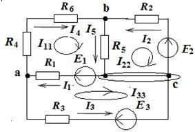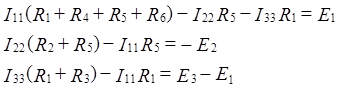 Так как три контура, то будет три контурных тока I11, I22, I33. Направления этих токов выбираем по часовой стрелке рис 3. Запишем настоящие токи через контурные: