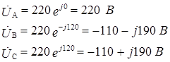 1. Фазные напряжения приемника равны соответствующим линейным напряжениям источника питания