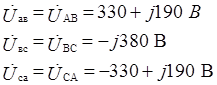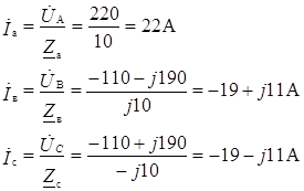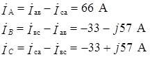 Линейные токи определяются по фазным токам по первому закону Кирхгофа: