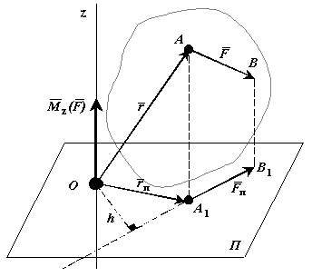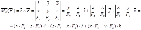 точки приложения этой силы, то момент силы относительно начала координат вычисляется следующим образом: