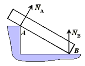 ), действующих на стержень, приложена в его геометрическом центре (точка С). Так как стержень опирается на гладкую поверхность, то реакция связи (сила