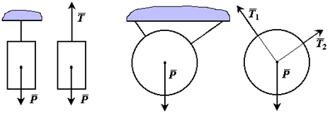 ). Гиря становится свободным твердым телом на которое действуют две силы и при этом оно находится в покое. Согласно аксиоме о равновесии двух сил, силы