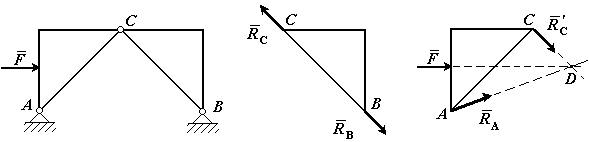 Пример 2-1. На невесомую трехшарнирную арку действует горизонтальная сила