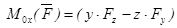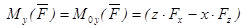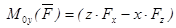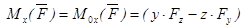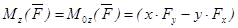 точки приложения этой силы, относительно осей координат, то моменты силы относительно осей координат вычисляется следующим образом: