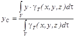 Координаты центра тяжести неоднородного твердого тела в выбранной системе отсчета определяются следующим образом:
