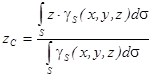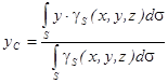 Если твердое тело представляет собой неоднородную поверхность, то координаты центра тяжести в выбранной системе отсчета определяются следующим образом: