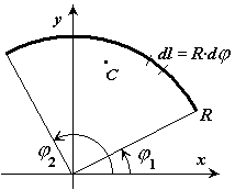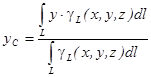 Если твердое тело представляет собой неоднородную линию, то координаты центра тяжести в выбранной системе отсчета определяются следующим образом: