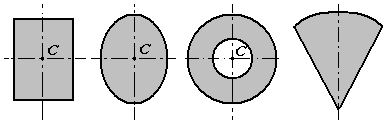 1. Симметрия.   Если однородное тело имеет плоскость, ось или центр симметрии, то его центр тяжести лежит соответственно в плоскости симметрии, оси симметрии или в центре симметрии.