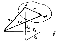 Доказательство. Действительно, пусть отрезок АМ соединяет две произвольные точки тела, совершающего поступательное движение. Положение точек А и М определим их радиусами-векторами rA и гM (рис. 48). Проведем вектор АМ = г, соединяющий точки А и М. Тогда